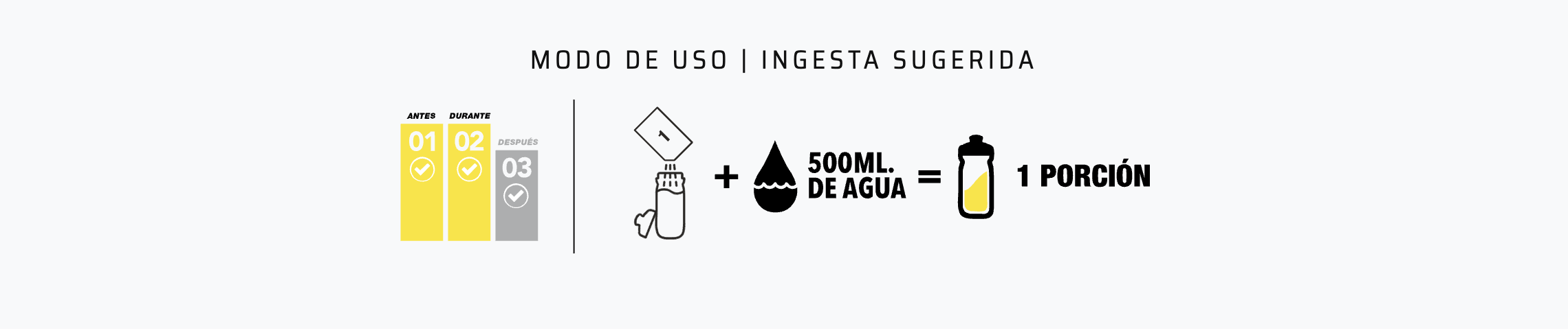 Durante el entrenamiento o competencia y en condiciones de alta sudoración, utilizar con PROSALT, ya que SPORT FUEL tiene un bajo aporte de electrolitos.