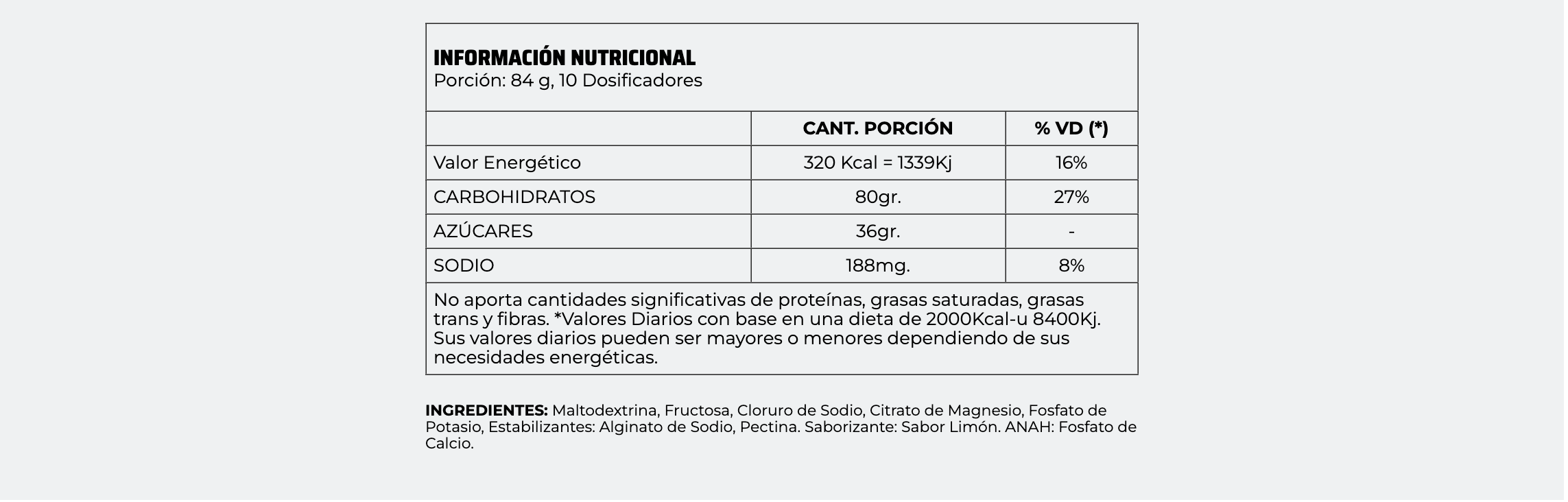También es recomendable su consumo junto a HYDROMAX durante la actividad física para optimizar el aporte de carbohidratos y reponer sales minerales.